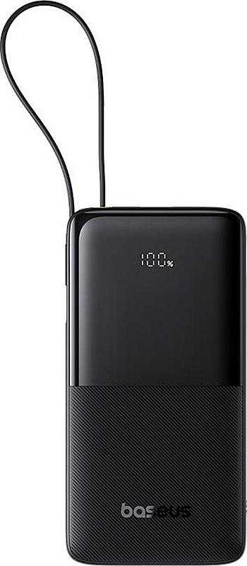 Powerbanka Baseus s integrovaným kabelem, kapacitou 20000 mAh a indikátorem stavu nabití.