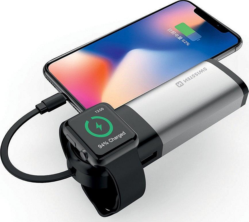 Powerbanka Swissten s kapacitou 6700 mAh a možností bezdrátového nabíjení Apple Watch.