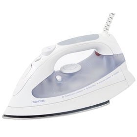 Napařovací žehlička s nerezovou žehlící plochou, systémem anti-calc zabraňující vytváření vodního kamene a funkcí drip-stop zamezující odkapávání vody.