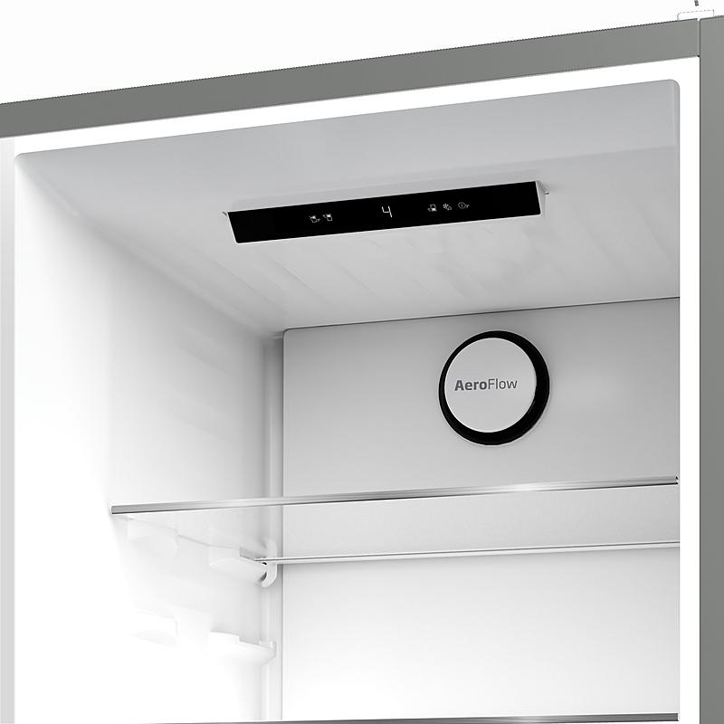 Beznámrazová chladnička Beko s displejem a invertorovým motorem. Energetická třída C, mrazící výkon 5 kilogramů za den a celkový objem 316 litrů.