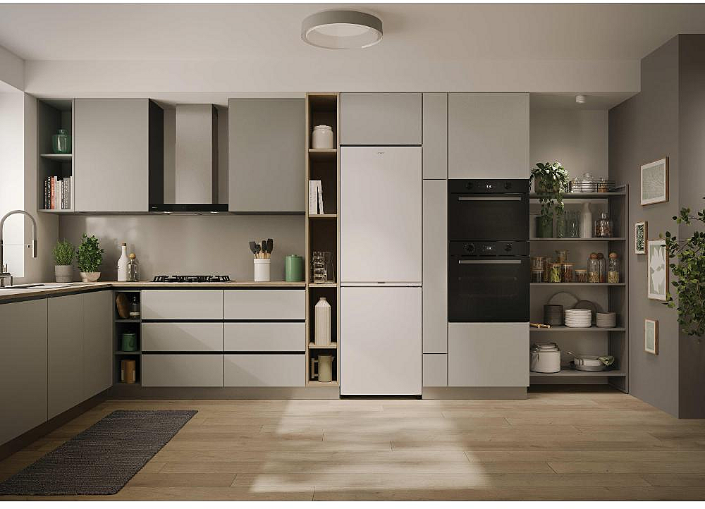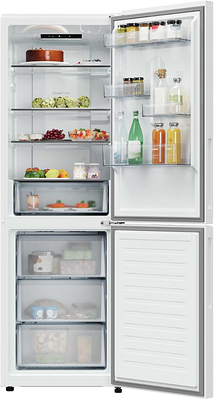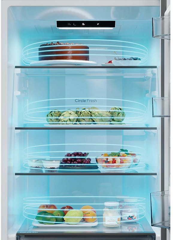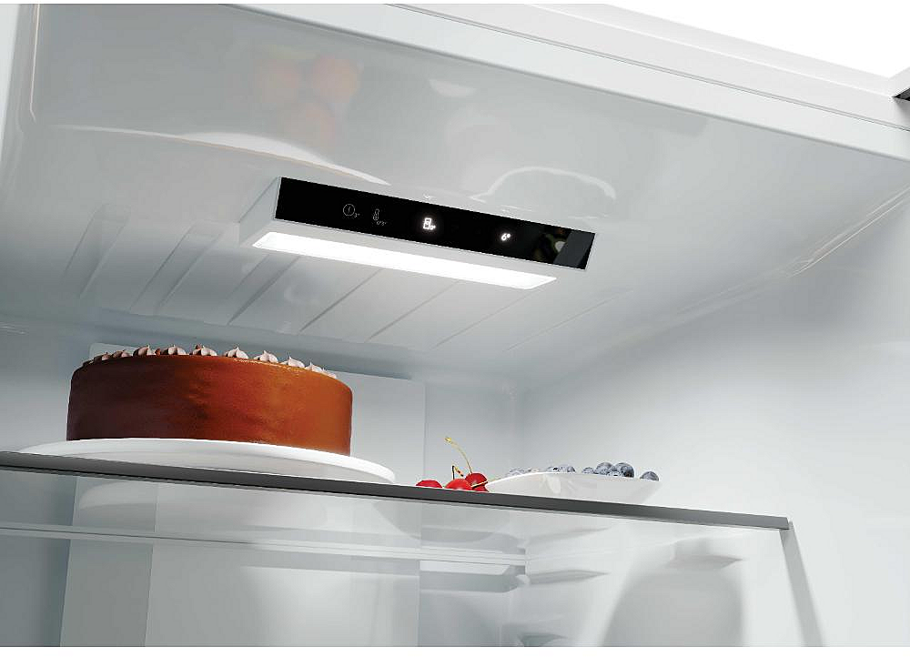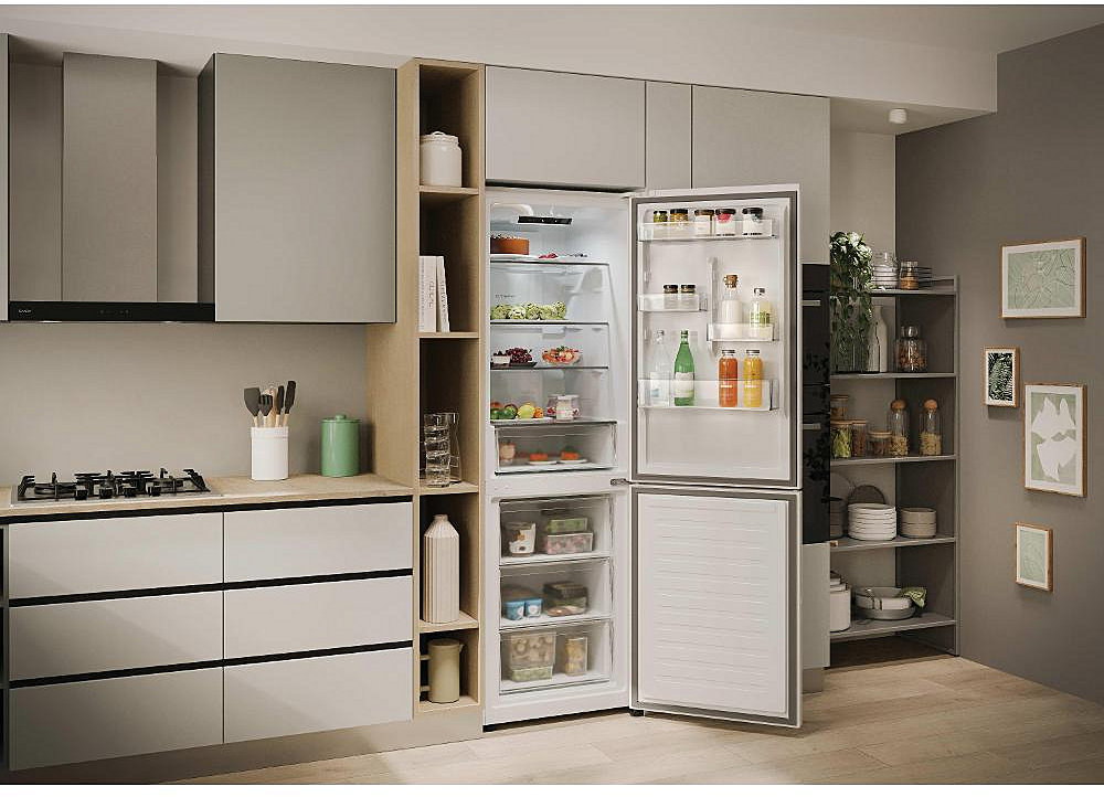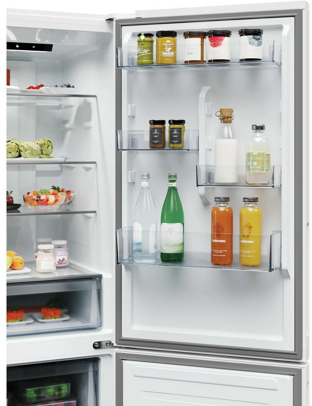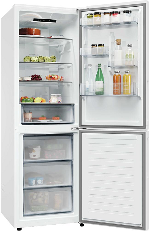 Beznámrazová chladnička Candy se zaměnitelným otevíráním a možností propojení přes chytrý telefon. Energetická třída C, celkový objem 355 litrů a LED osvětlení.