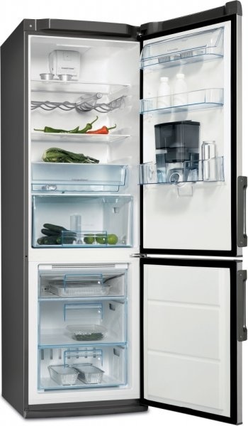 323 l, (245+78), elektronické ovládání, LCD display, skleněné police, Fresh Frost Free, zásobník vody s Brita filtrem, nízkoteplotní zásuvka, energetická třída A+, hlučnost 42 dB, spotřeba: 0,775 kWh/24 hod., rozměry: v x š x h 185x59,5x63,2 cm, barva: šedá, nerez dveře
