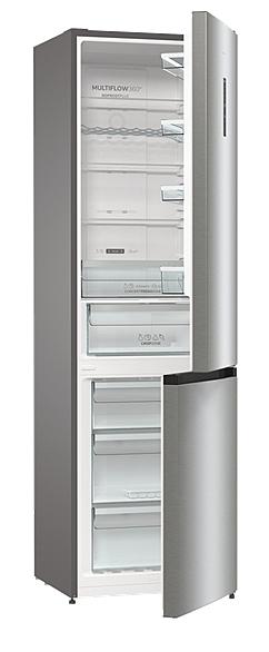 Kombinovaná chladnička Gorenje s beznámrazovým systémem a možností změny směru otevírání dveří. Energetická třída D, funkce super mrazení a celkový objem 331 litrů.