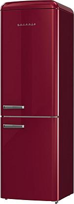 Retro kombinovaná lednice Gorenje s funkcí rychlého mrazení, NoFrost technologií a úsporným režimem Ecomode. Energetická třída D, invertorový kompresor a celkový objem 300 l.