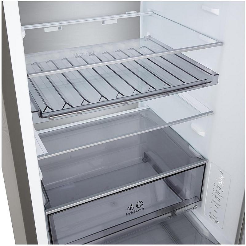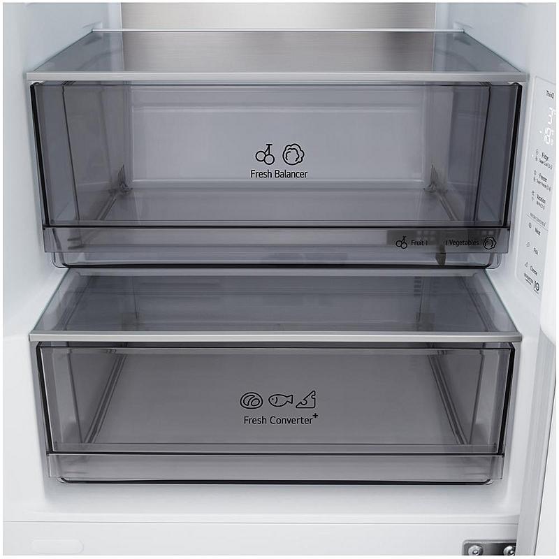 Beznámrazová lednice LG s alarmem otevřených dveří, invertorovým motorem a funkcí super chlazení a mrazení. Energetická třída C a celkový objem 333 l.