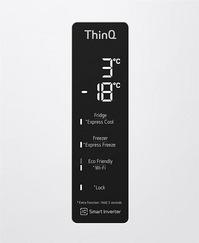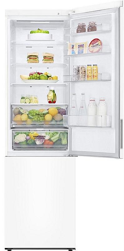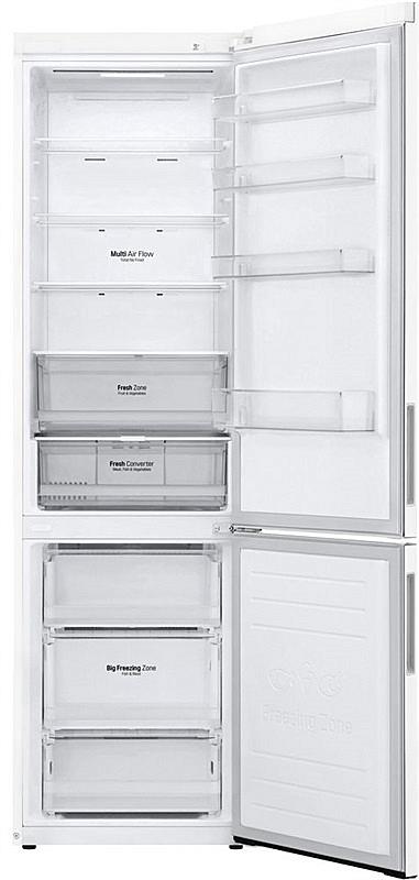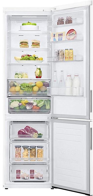 Beznámrazová kombinovaná chladnička LG s LED osvětlením a invertorovým kompresorem. Energetická třída C, mrazící výkon 10 kilogramů za den a celková kapacita 384 litrů.