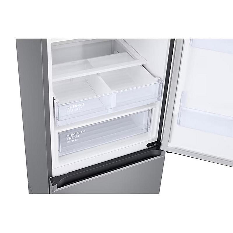 Beznámrazová kombinovaná lednice Samsung s invertorovým motorem, funkcí super chlazení a mrazení a elektronickým ovládáním. Energetická třída B a celkový objem 387 l.