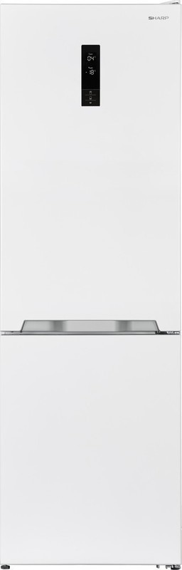 Beznámrazová lednička Sharp s mrazákem dole, displejem, oddělenou regulací a vnitřním LED osvětlením. Energetická třída A++ a celkový objem 324 litrů.