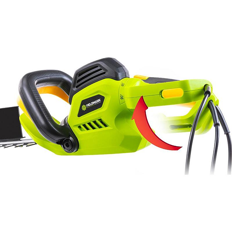Nůžky na živý plot Fieldmann se sběrnou lištou, délkou 66 cm a příkonem 750 W.