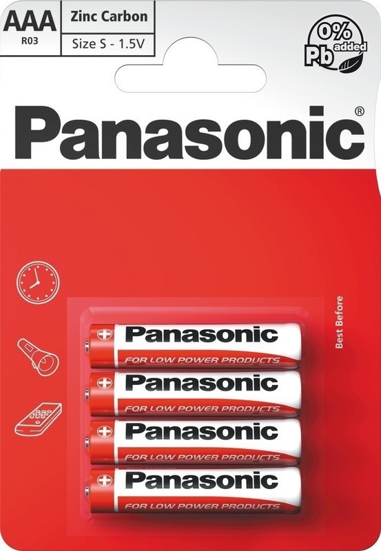 Zinkouhlíkové baterie Panasonic typu AAA.