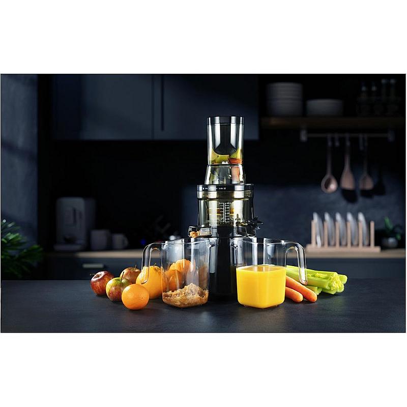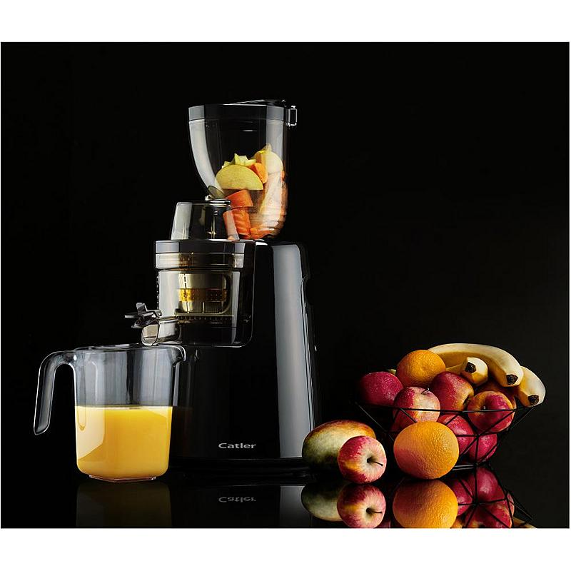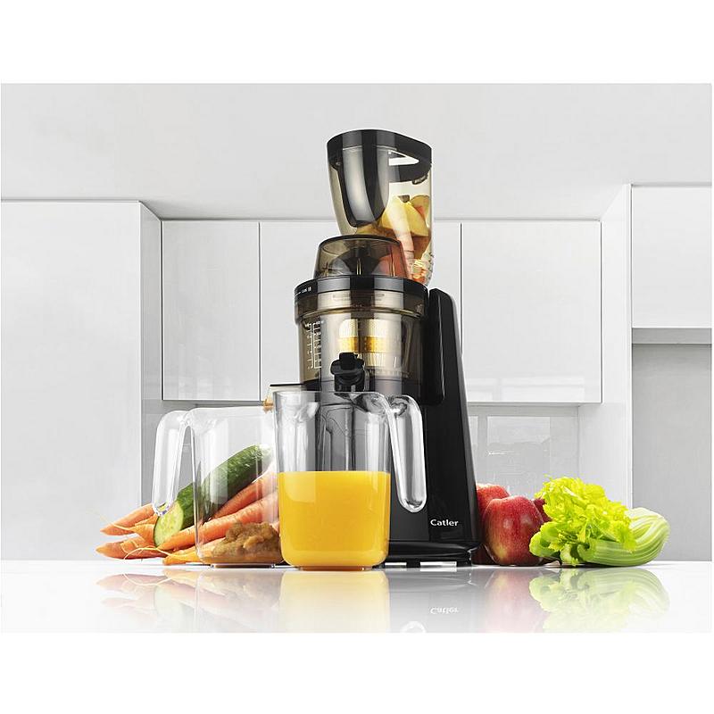 Odšťavňovač Catler s technologií pomalého lisování, indukčním motorem s tichým provozem a systémem proti odkapávání.
