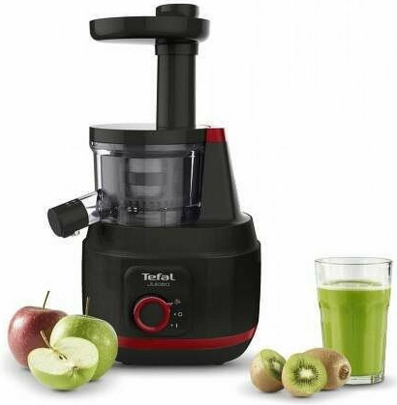 Elektrický odšťavňovač Tefal s technologií pomalého lisování s 1 rychlostí a zpětným chodem pro uvolnění zaseknutých kusů.