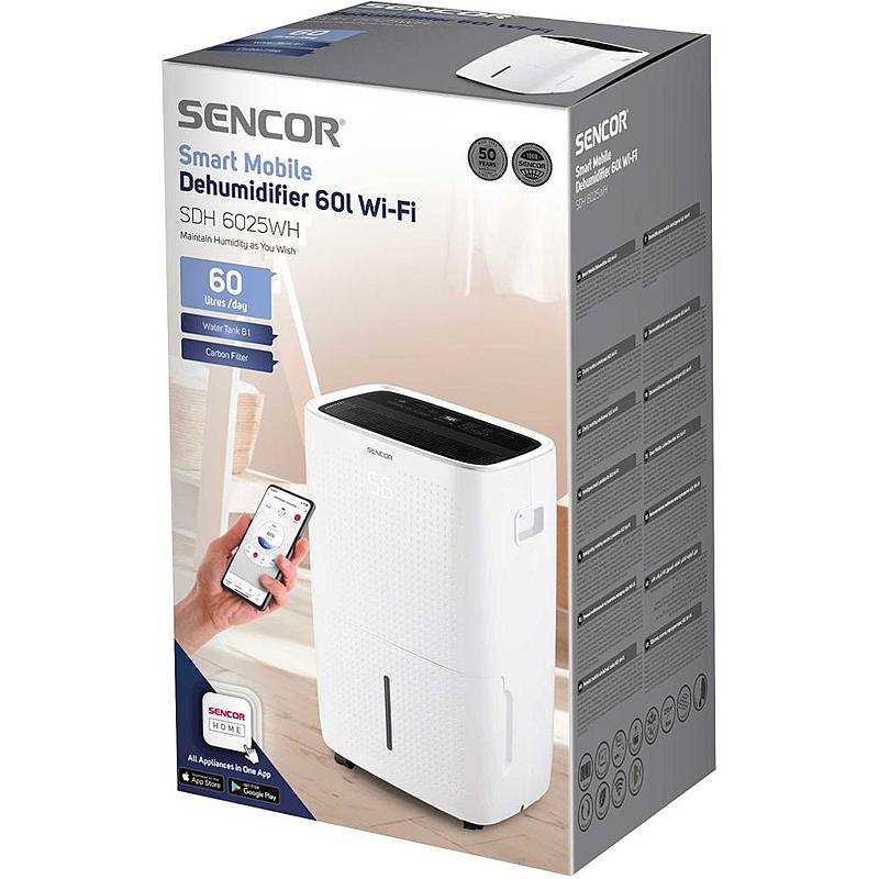 Odvlhčovač vzduchu Sencor s regulací rychlosti, 4 režimy, časovačem a dětským zámkem.