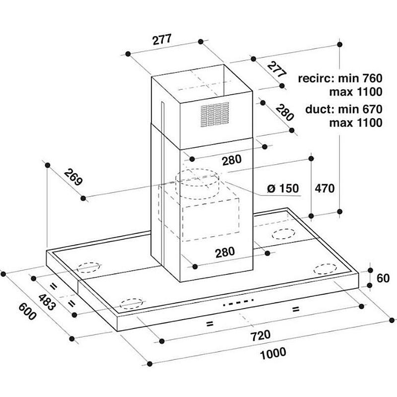 Ostrůvkový odsavač par Whirlpool s technologií 6.smyslu, 4 stupni výkonu a energetickou třídou B.