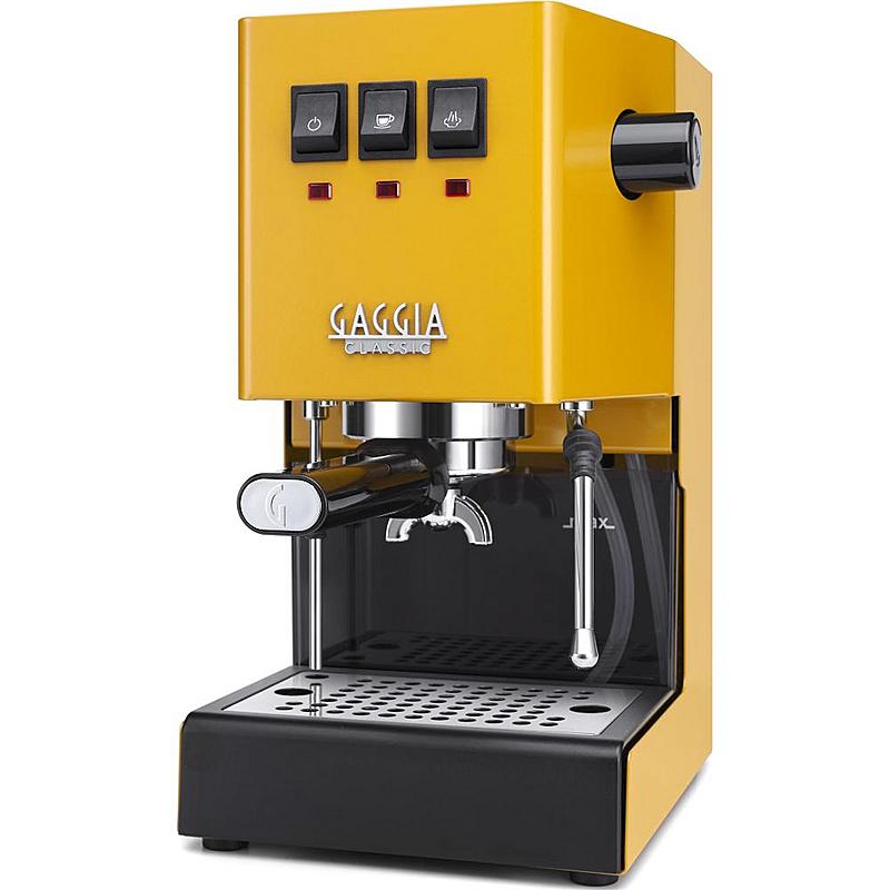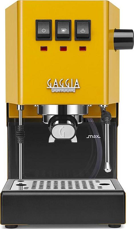 Pákové espresso Gaggia s parní tryskou, možností přípravy dvou šálků najednou a výhřevnou plochou na šálky.