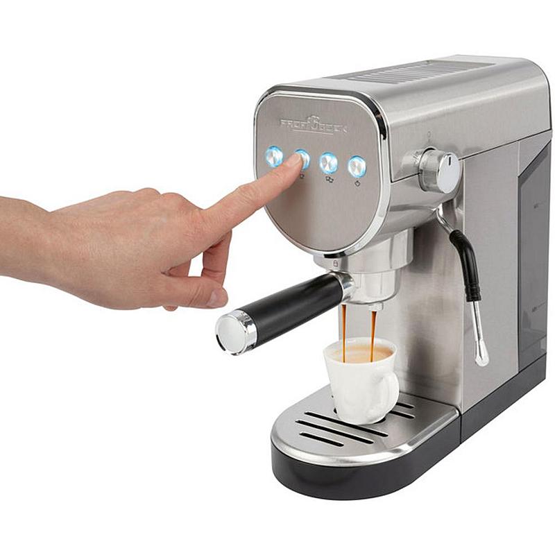 Pákové espresso ProfiCook s nástavcem na kapsle Nespresso, parní tryskou a tlakem 20 barů.