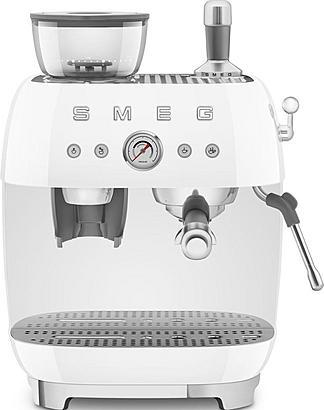 Pákový kávovar Smeg s tlakem čerpadla 20 barů, mlýnkem na kávu a příkonem 1650 W.