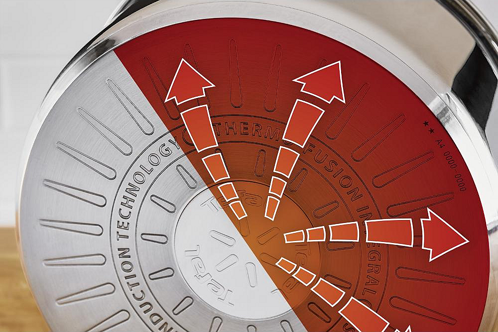 Pánev Tefal s průměrem 24 cm, nepřilnavým povrchem a indikátorem teploty.