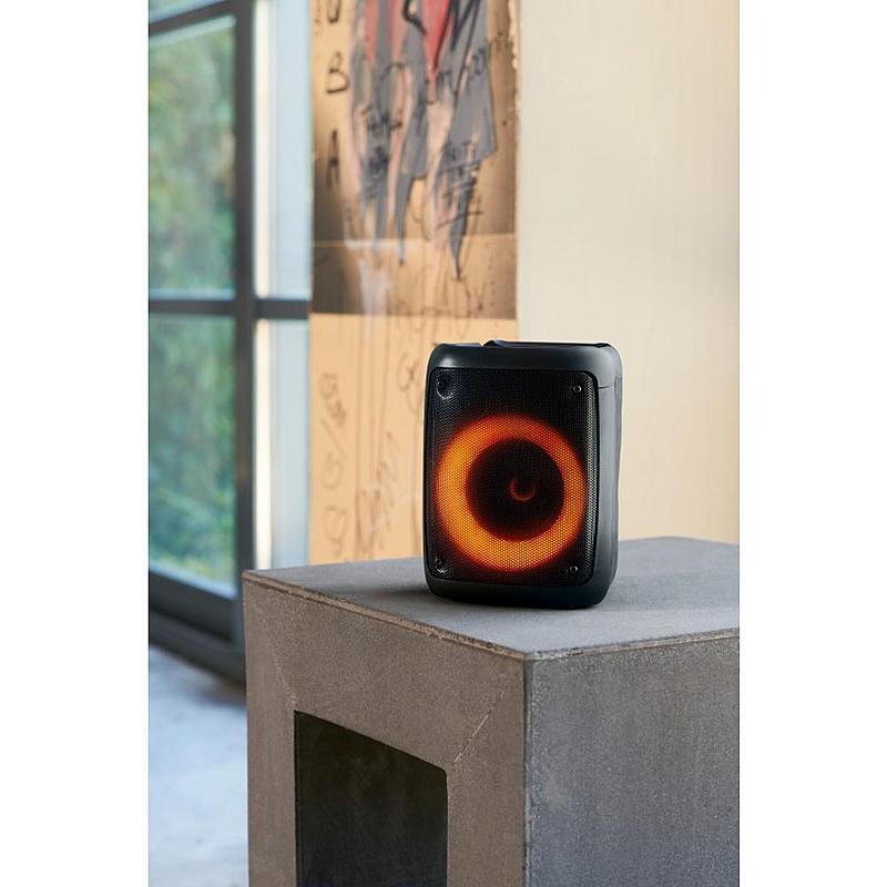 Bezdrátový party reproduktor Bigben s výkonem RMS 20 W, RGB podsvícením a možností přehrávání přes USB-C.