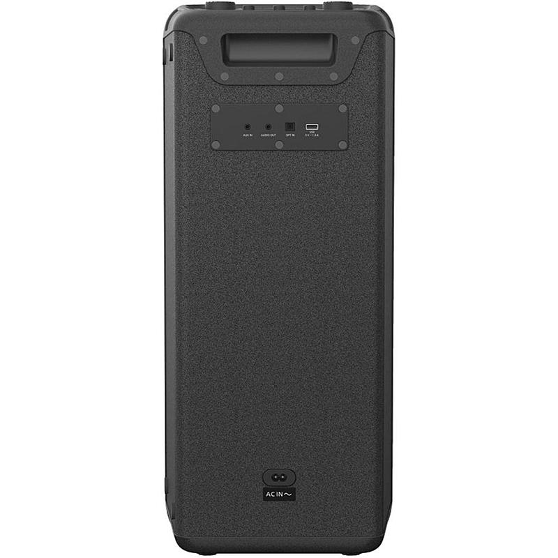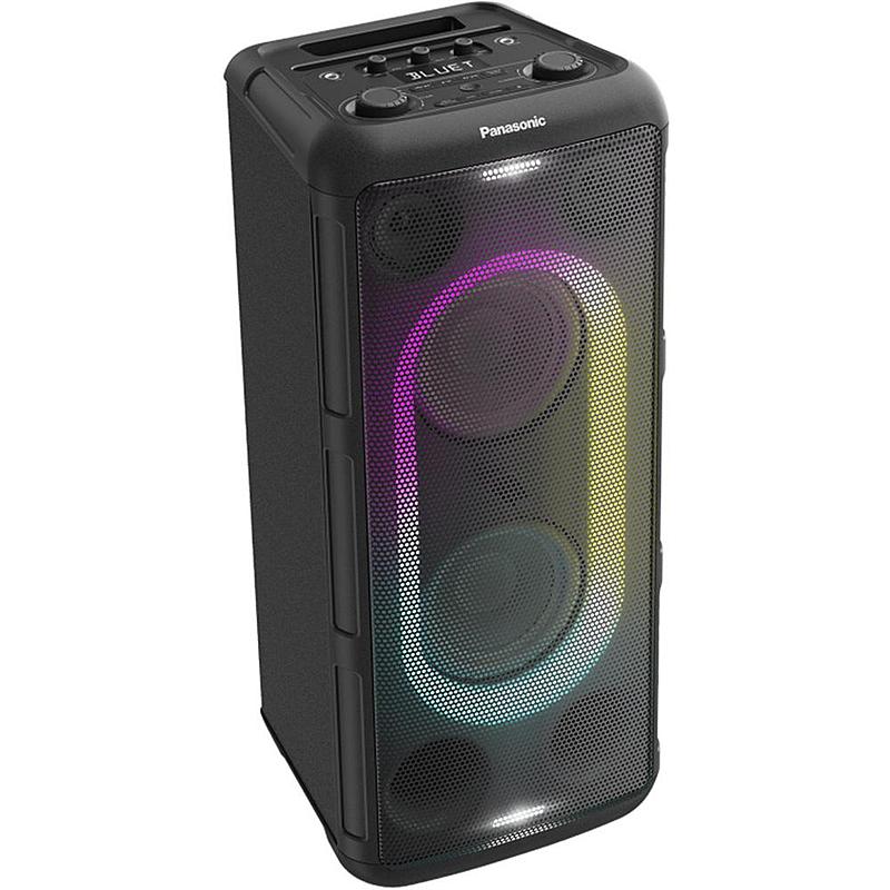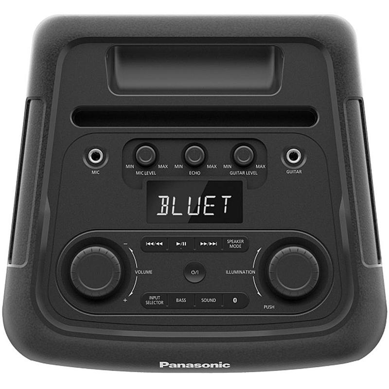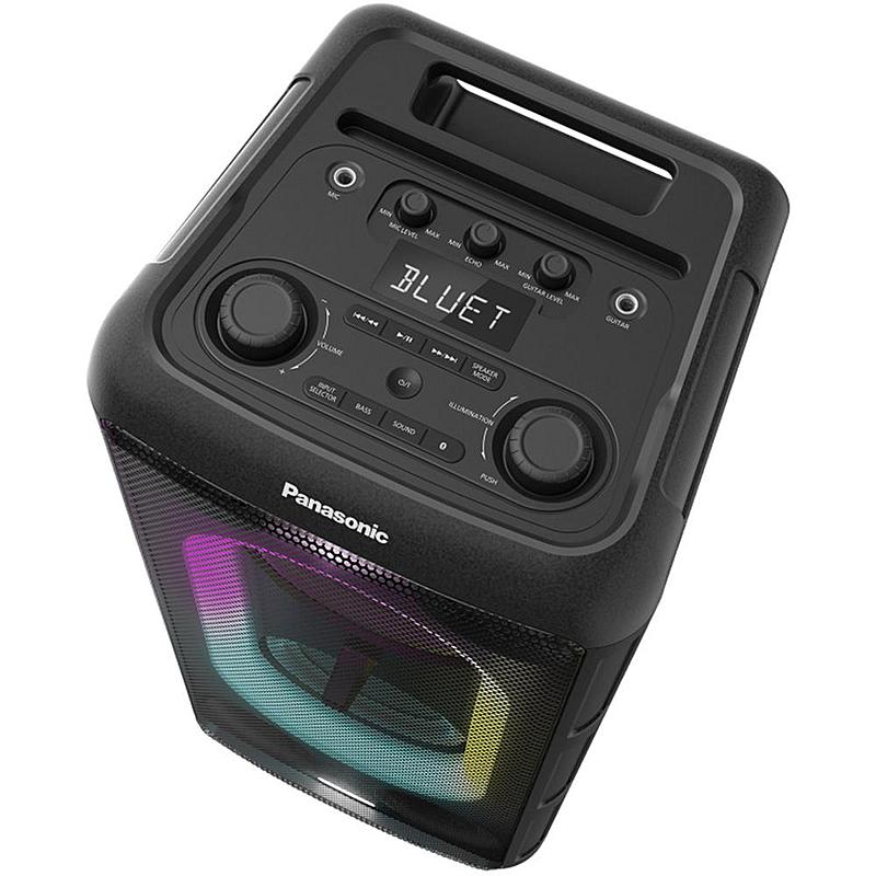 Párty reproduktor Panasonic s výkonem 1000 W, funkcí karaoke a kytarovým vstupem.