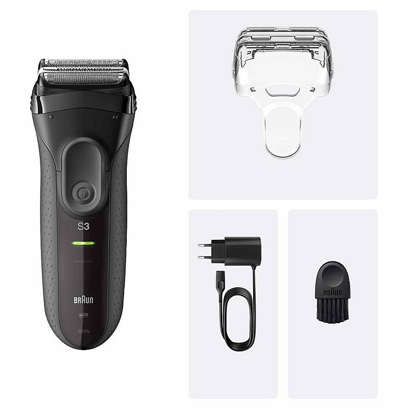 Pánský holící strojek Braun s AKU napájením, jedním nástavce a jednou rychlostí.