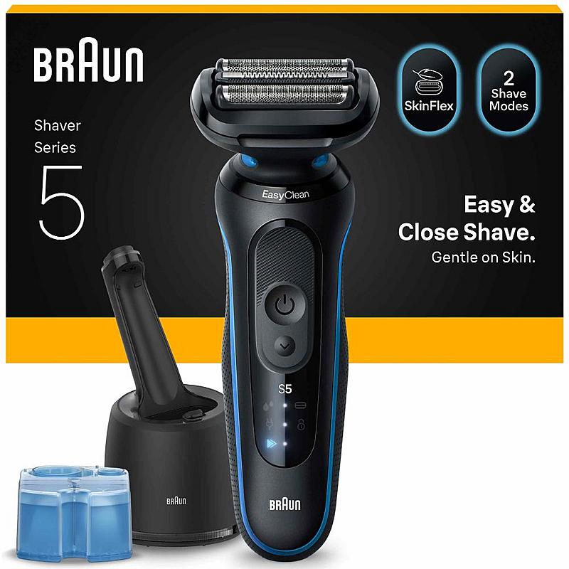 Pánský holící strojek Braun s čistící jednotkou, indikátorem nabíjení a třemi planžetami.