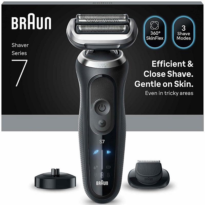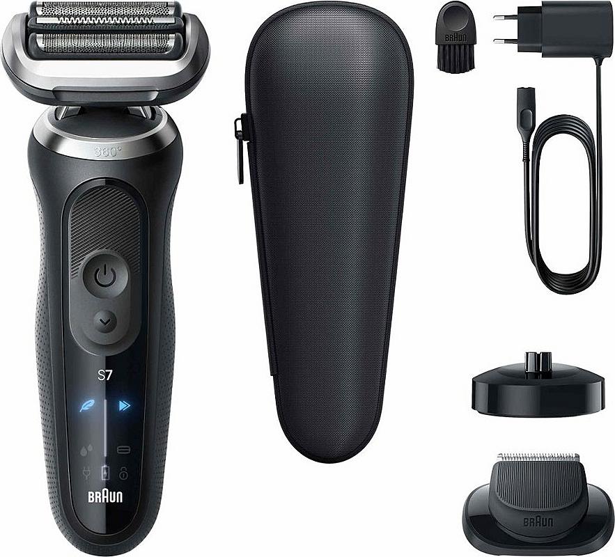 Pánský holící strojek Braun s indikátorem nabíjení, zastřihovačem a třemi rychlostmi.
