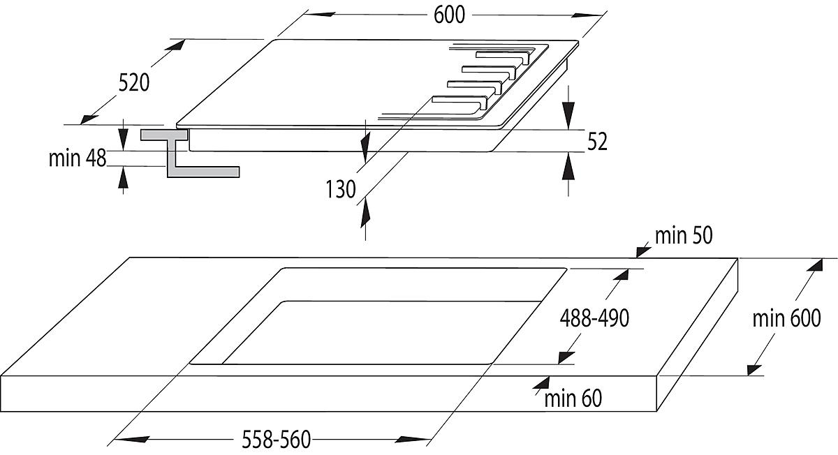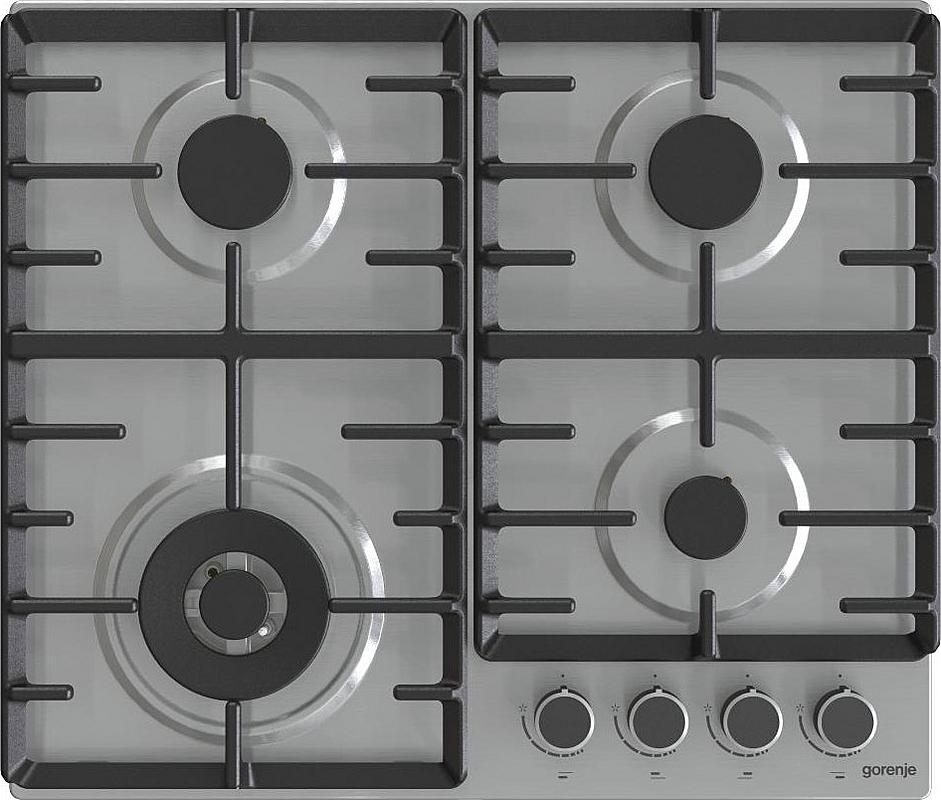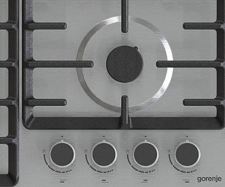 Plynová varná deska Gorenje s elektrickým zapalováním, litinovými rošty a WOK hořákem.