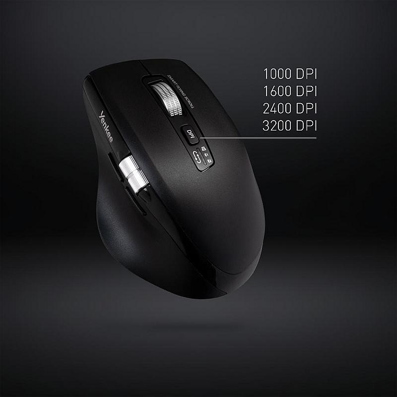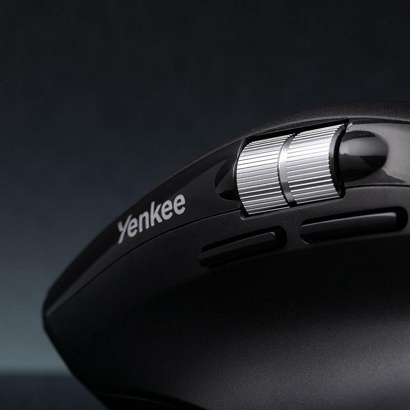 Bezdrátová ergonomická myš Yeknee s Bluetooth a možností připojení přes USB přijímač. Multifunkční LED indikátor pro signalizaci připojení, nastavení DPI a stavu baterie.