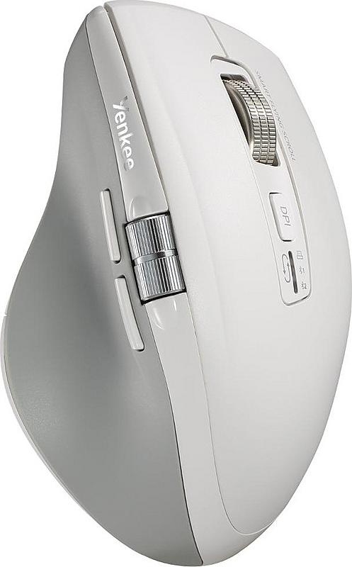 Bezdrátová ergonomická myš Yeknee s Bluetooth a možností připojení přes USB přijímač. Multifunkční LED indikátor pro signalizaci připojení, nastavení DPI a stavu baterie.