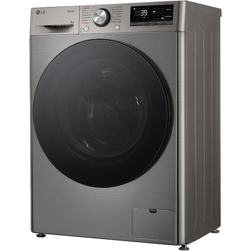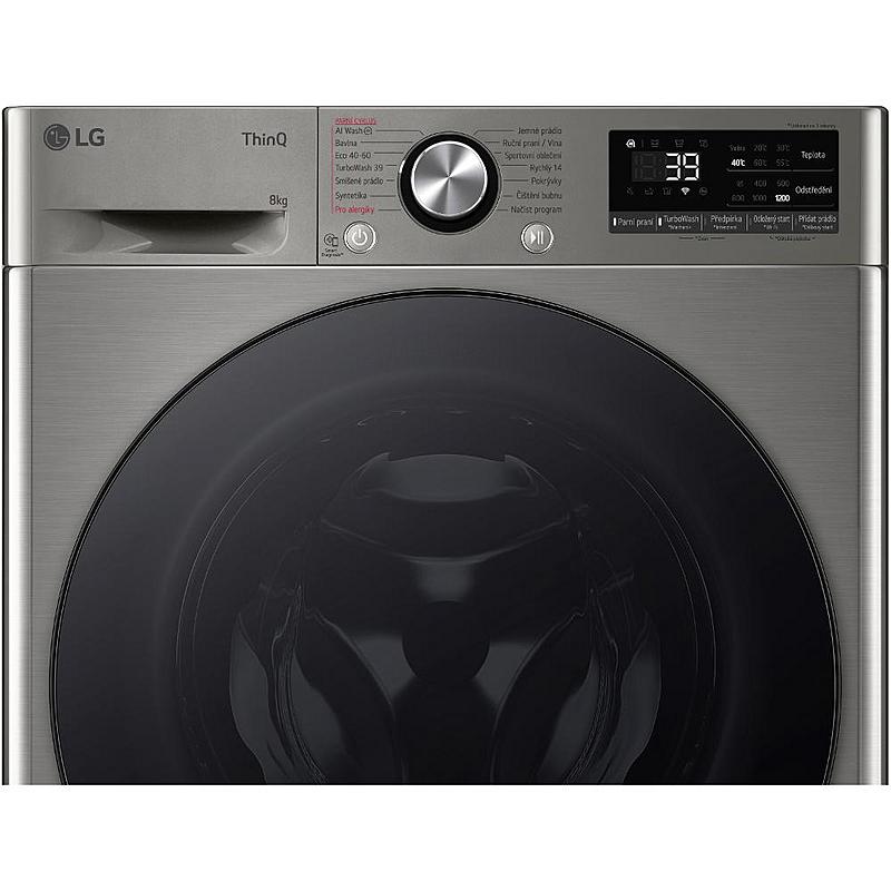 Předem plněná pračka LG s Direct Drive motorem, parní funkcí a smart funkcemi. Energetická třída A, kapacita 8 kg prádla a odložený start.