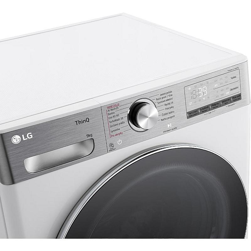 Předem plněná pračka LG s Direct Drive motorem, českým ovládacím panelem a smart funkcemi. Energetická třída A a kapacita 9 kg prádla.