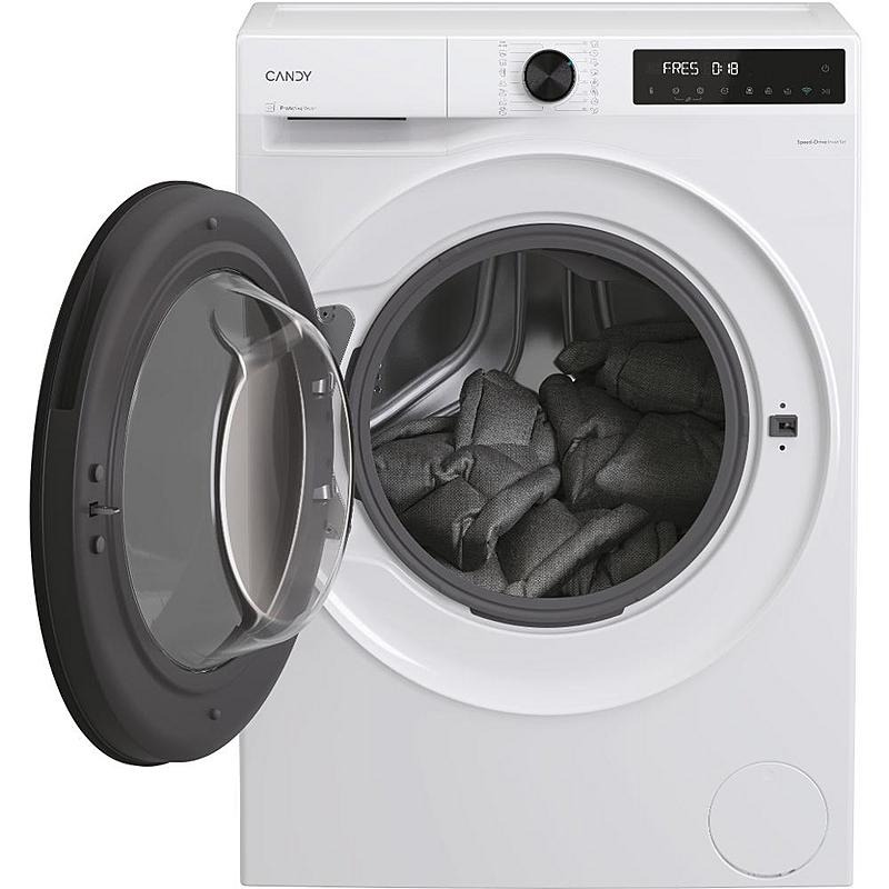 Předem plněná pračka Candy s invertorovým motorem, WiFi připojením, odloženým startem a 16 programy. Energetická třída A, kapacita 9 kg prádla a funkce páry.