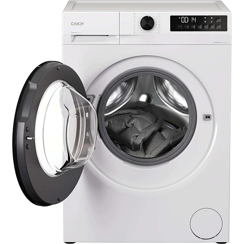 Předem plněná pračka Candy s invertorovým motorem, odloženým startem a 16 programy. Energetická třída A, kapacita 9 kg prádla a funkce páry.