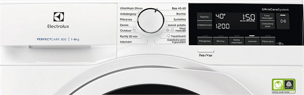 Předem plněná pračka Electrolux s displejem a funkcí odloženého startu. Energetická třída A a maximální náplň 8 kilogramů prádla.