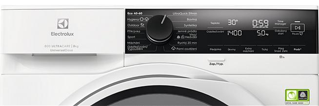 Předem plněná pračka Electrolux s českým ovládacím panelem a funkcí páry. Energetická třída A, 14 programů a celková kapacita 8 kilogramů prádla.