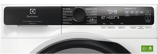 Předem plněná pračka Electrolux s českým ovládacím panelem a funkcí AutoDose. Energetická třída A, 13 programů a celková kapacita 10 kilogramů prádla.
