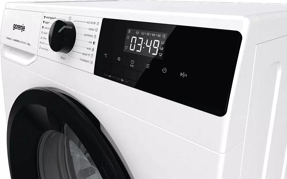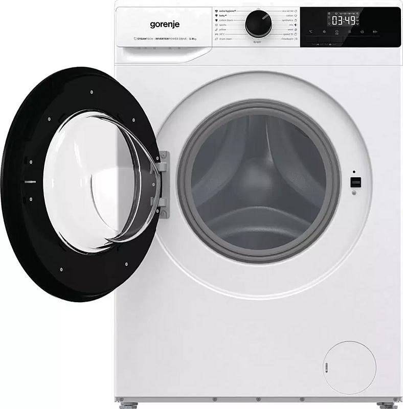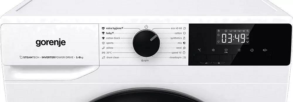 Předem plněná pračka Gorenje s invertorovým motorem, odloženým startem a parní funkcí. Energetická třída A, kapacita 8 kg prádla a 15 programů.