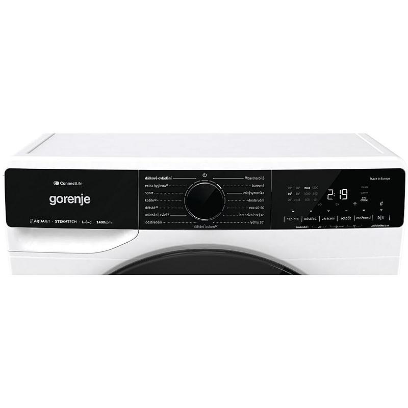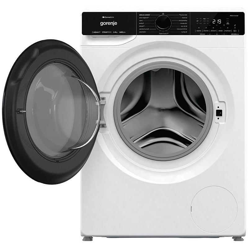 Předem plněná pračka Gorenje s invertorovým motorem, senzorem úrovně vody a parní funkcí. Energetická třída A, kapacita 8 kg prádla a ochrana proti přetečení.
