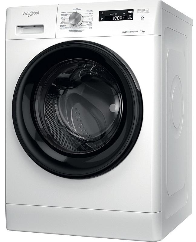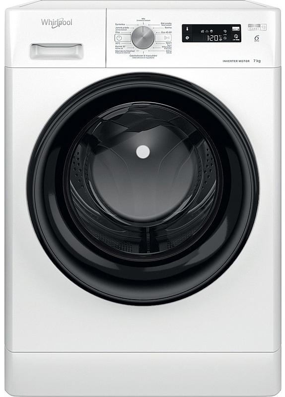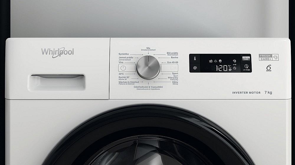 Předem plněná pračka Whirlpool s funkcí 6. smyslu a odloženého praní. Energetická třída B, až 1400 otáček za minutu a maximální náplň 7 kilogramů prádla.