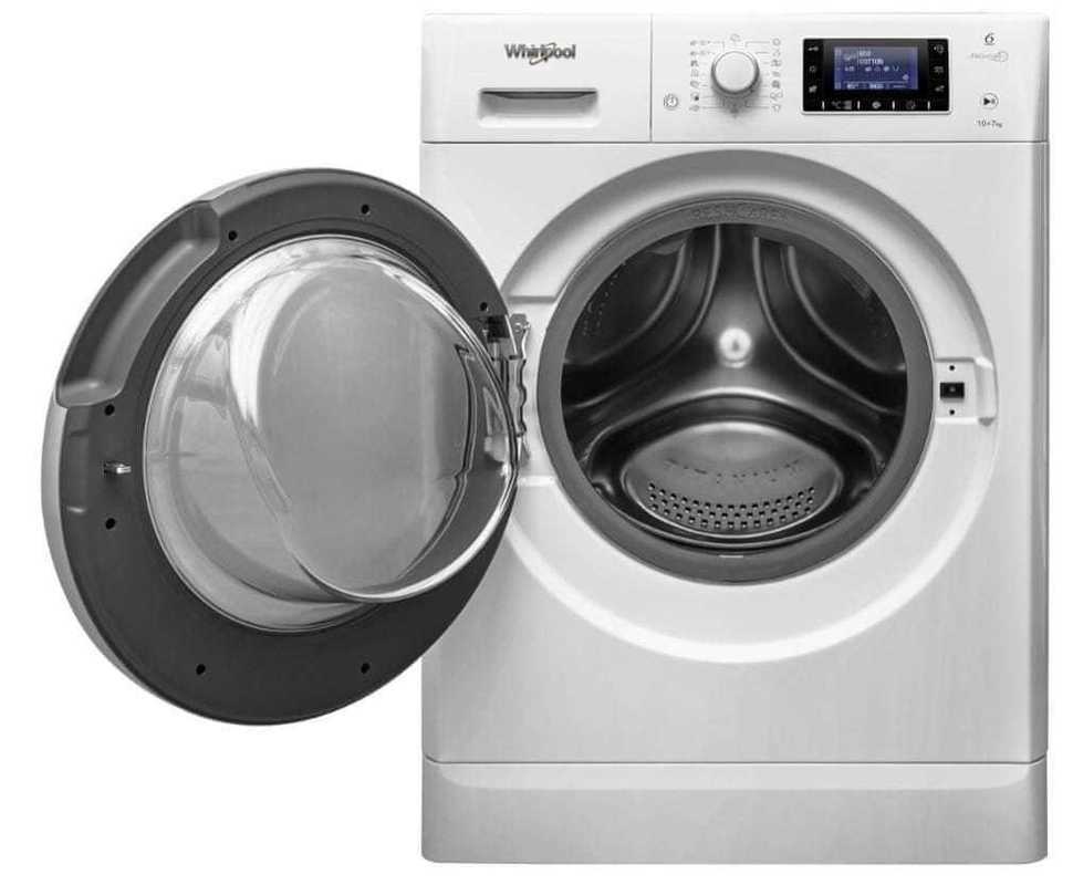 Předem plněná pračka se sušičkou Whirlpool v energetické třídě A s technologií 6. smysl a kapacitou 10 kg praní a 7 kg sušení. 14 programů, odložený start, program pro osvěžení prádla.