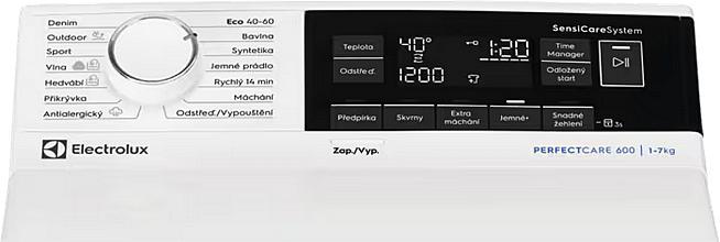 Vrchem plněná pračka Electrolux s parním programem a českým ovládacím panelem. Energetická třída A, 14 programů a celková kapacita 7 kilogramů prádla.