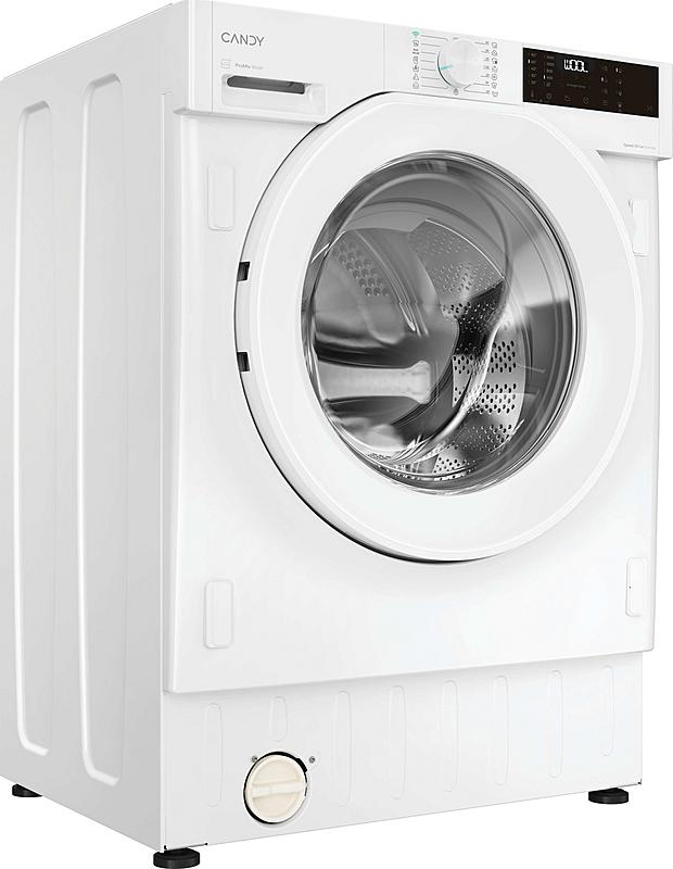 Vestavná předem plněná pračka Candy s invertorovým motorem, možností WiFi připojení a funkcí snadného žehlení. Energetická třída A, kapacita 9 kg prádla a odložený start.