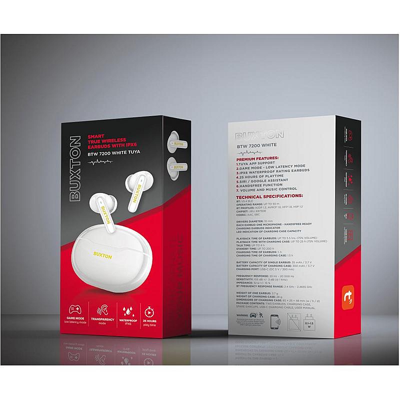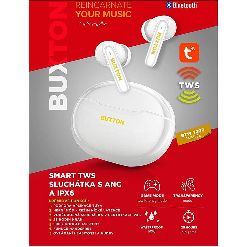 Přenosná Bluetooth sluchátka Buxton s herním módem, podporou Hands-free a podporou hlasových asistentů Siri a Google.
