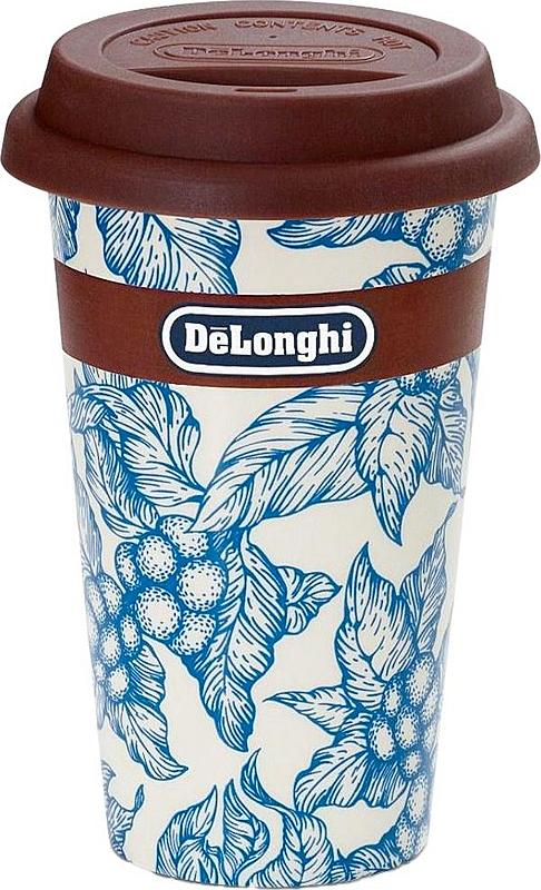 Keramický termo hrnek DeLonghi se silikonovým víkem a dvojitou stěnou.