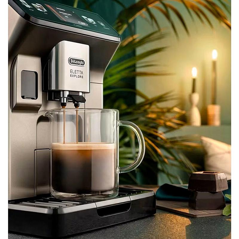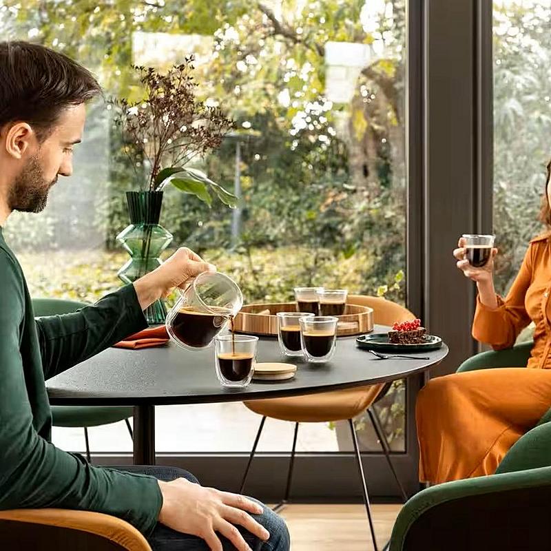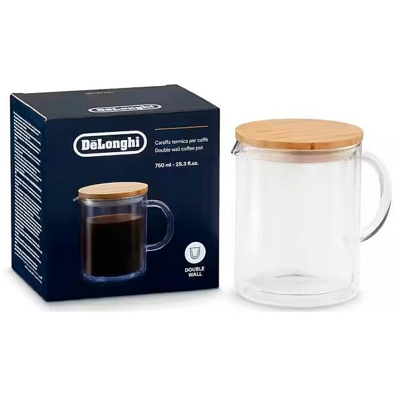Skleněná karafa na kávu DeLonghi s dvojitou stěnou a objemem 750 ml.