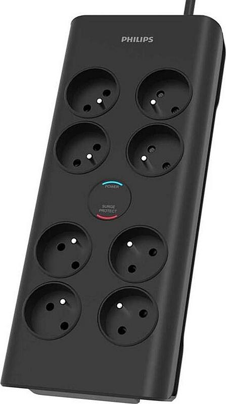 Přepěťová ochrana Philips s 8 zásuvkami, vypínačem a délkou 2 m.