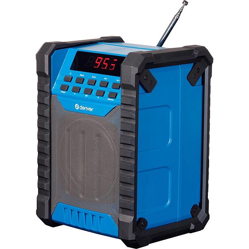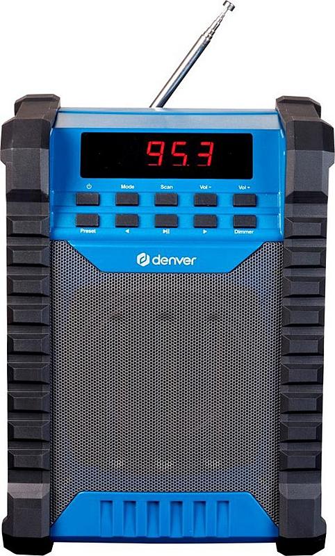 Pracovní rádio Denver s Bluetooth, FM s digitálním tunerem a výkonem RMS 10 W. Integrovaná baterie či napájení ze sítě a odolnost proti vodě.
