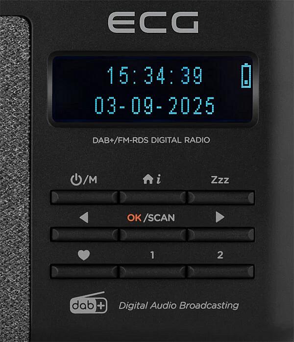 Přenosné rádio ECG s DAB+/FM s pamětí 40 stanic a funkcí budíku.