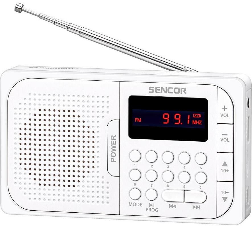 Přenosné rádio Sencor s FM, Bluetooth a USB vstupem. Snadné digitální ladění stanic a výkon 1,2 W.